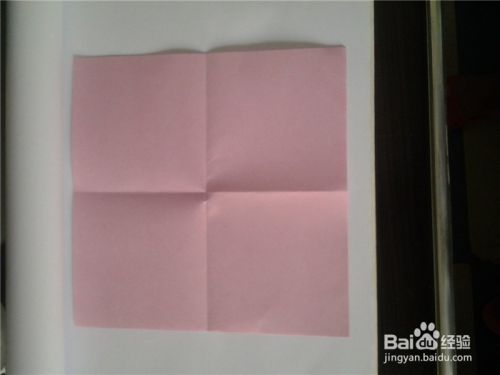 彩色纸背面沿着正方形的两条中线,上下左右分别对折。