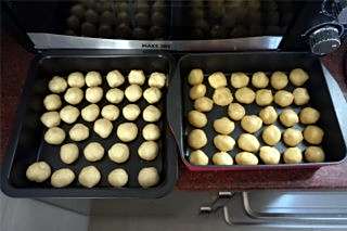 将油酥分成跟水油皮一样的等分,其中水油皮10克一份,油酥皮8克一份。