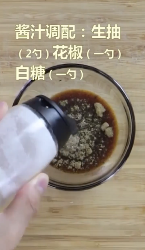 7碗中放入生抽2勺、花椒1勺和白糖1勺。