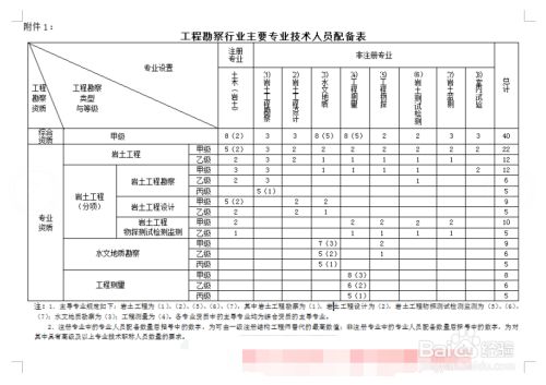 (1)专业配备齐全、合理。主要专业技术人员数量不少于 “工程勘察行业主要专业技术人员配备表”规定的人数。