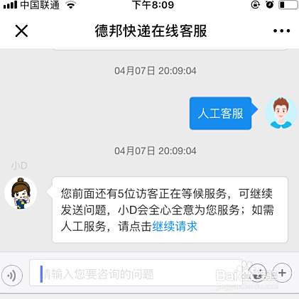 咨询高峰期会出现排队状态,如下图所示,等待德邦客服接入即可。