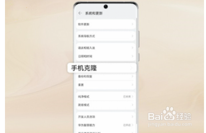 1、在手机系统和更新设置中点击【手机克隆】。