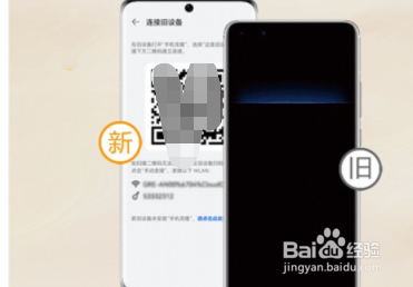 3、用旧手机扫描新手机上的二维码进行连接。