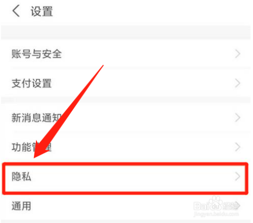 2、进入设置页面里,点肺叮击隐私,如下图够轿