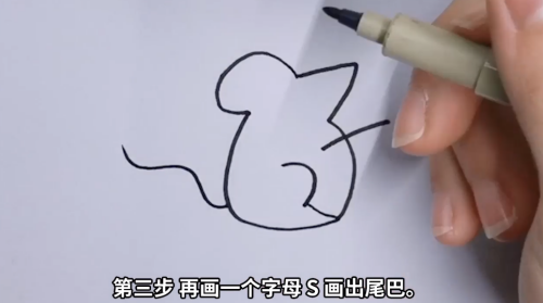 画一个字母S,画出尾巴。