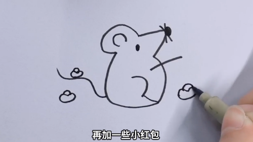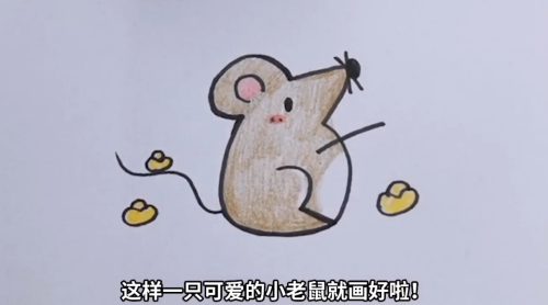 耳朵和腮红涂一点红色,金元宝涂上黄色,可爱的小老鼠就画好了。