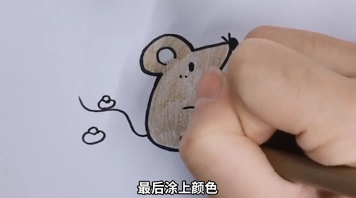 老鼠身子先涂上颜色。