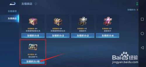 在这里就可以看到只需要10点友情积分就可以购买一张排位保护卡了。