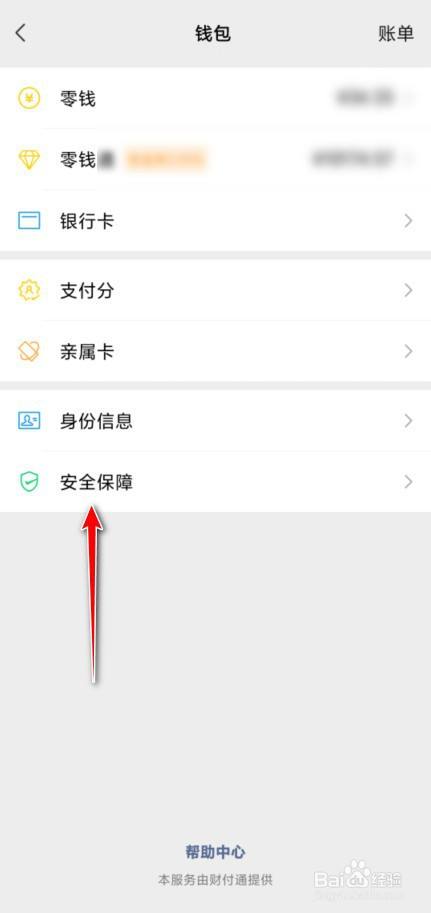 在钱包中点击进入安全保障。