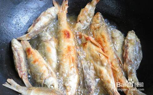 起锅,倒油,等油烧至七成热时放入小鱼煎至两面金黄