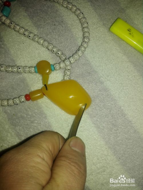 将蜜蜡用剪刀,轻轻刮,如果是粉末,为黄色,为真!