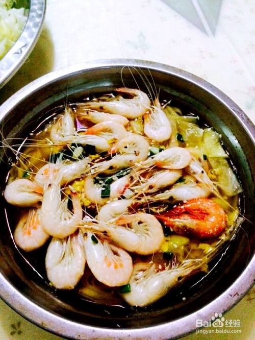 锅里加入半碗水,水开加入白虾,姜片,料酒半碗多,胡椒粉适量煮开,白虾发白即可。关火加入小葱。因为胡椒粉和虾超级配,可以体味。