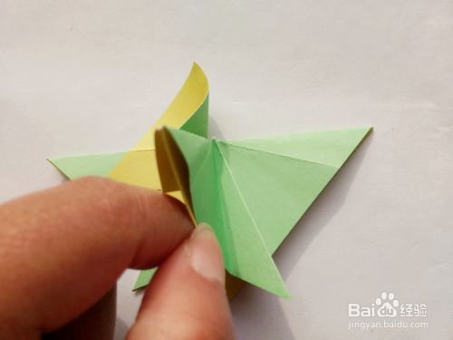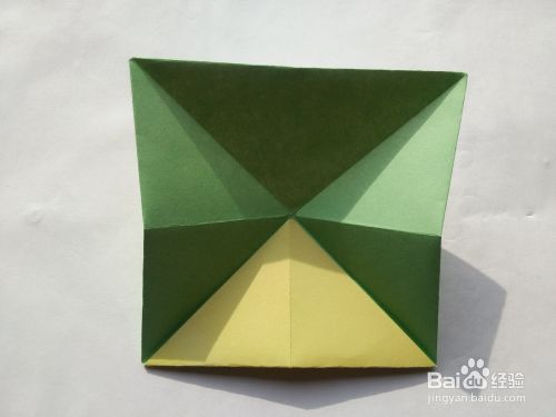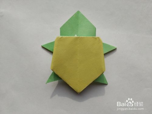 将两边的角再向里对折一些,之后沿中间的折痕向里折,使乌龟更立体一些。