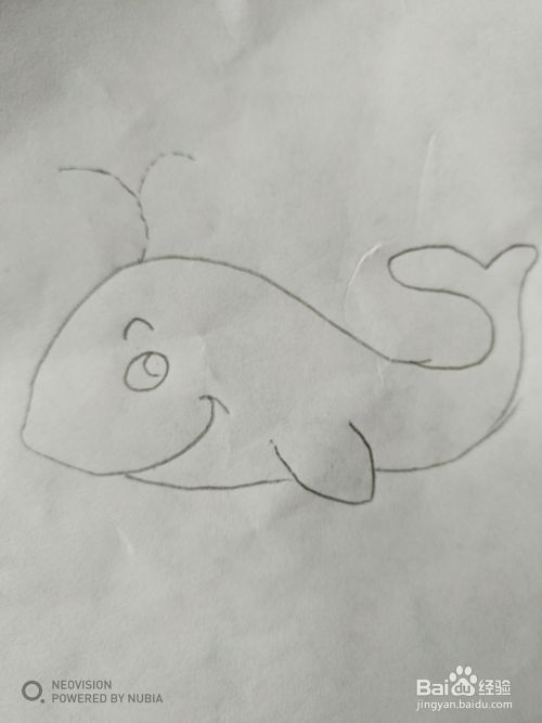 第六步,把小鲸鱼的鱼鳍部分画出来。
