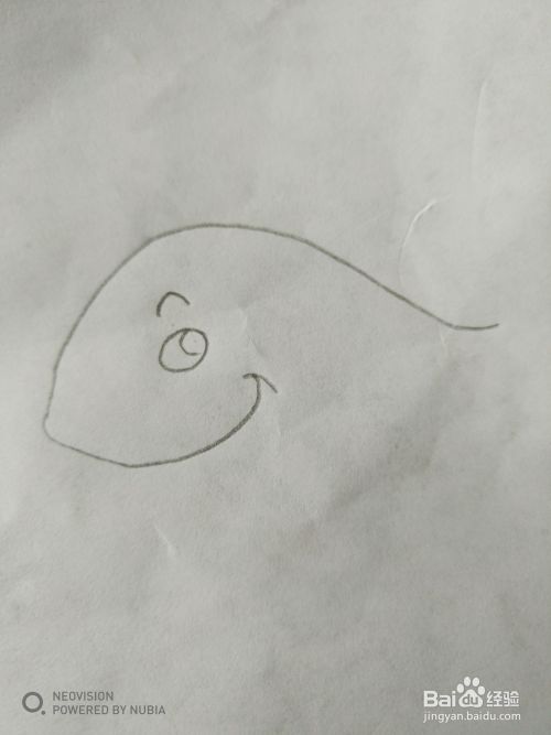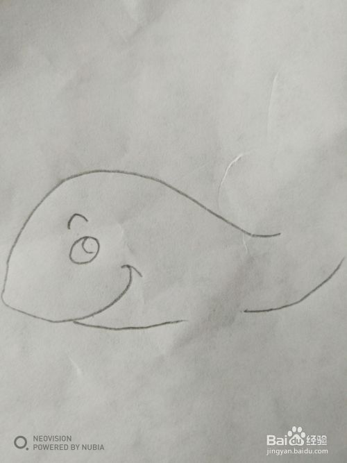第五步,然后把小鲸鱼的尾巴部分画出来。
