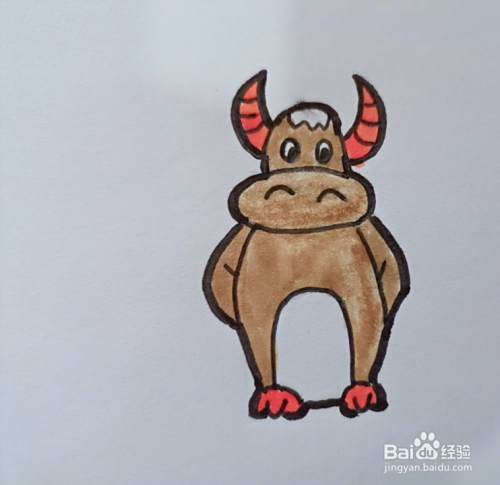 最后用马克笔涂上喜欢的颜色,牛画好了。