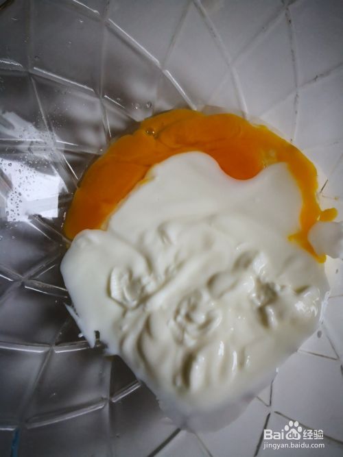 鸡蛋分离,蛋黄放入碗中,加入酸奶。
