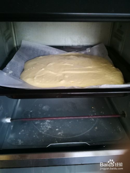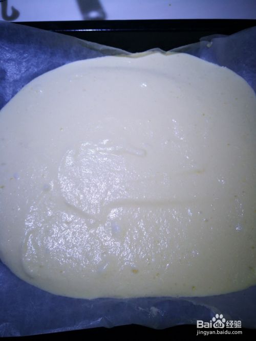 烤盘铺上油纸,倒入面糊。