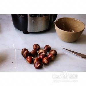 首先板栗用剪刀剪开一个口,准备烧好的开水下去闷个5到10分钟,剥去外壳。