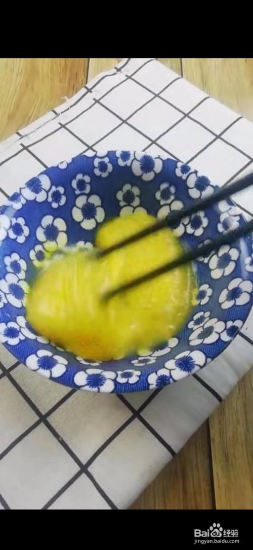 加入水淀粉,搅拌均匀,另外拿一个碗放入两个鸡蛋