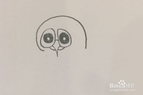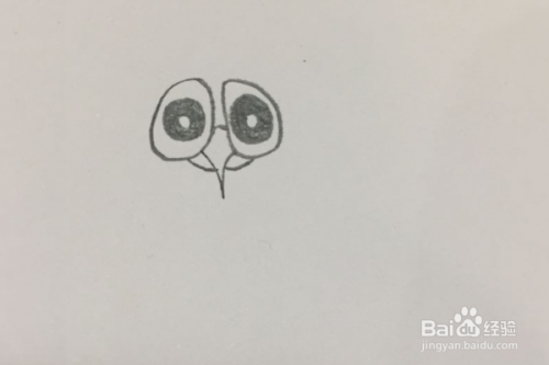 然后画出猫头鹰的眼窝,中间用线进行相连。
