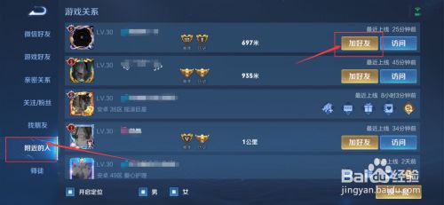 在左侧选择【附近的人】选项,然后在游戏关系列表中找到想要添加的好友,点击【加好友】即可。
