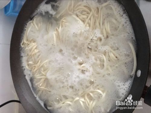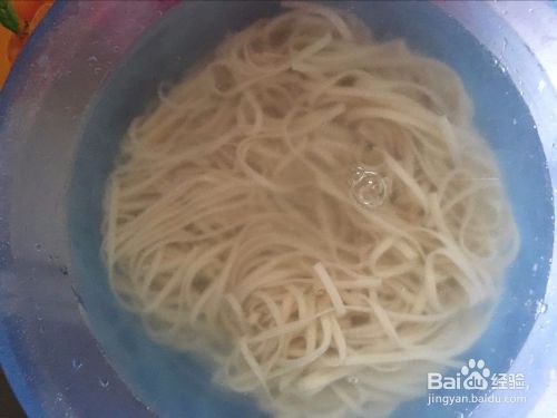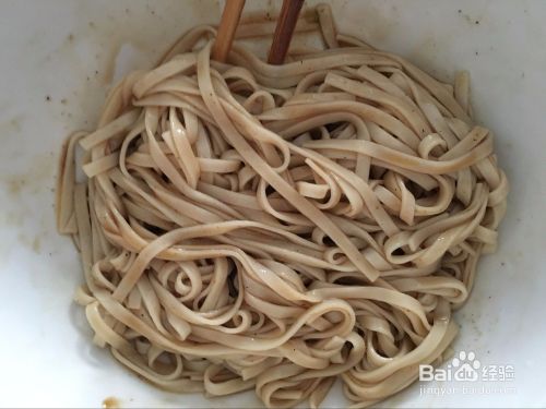 把煮熟的面条捞出过一次凉水,大约五分钟(要让面条每个部分都有过凉水)
