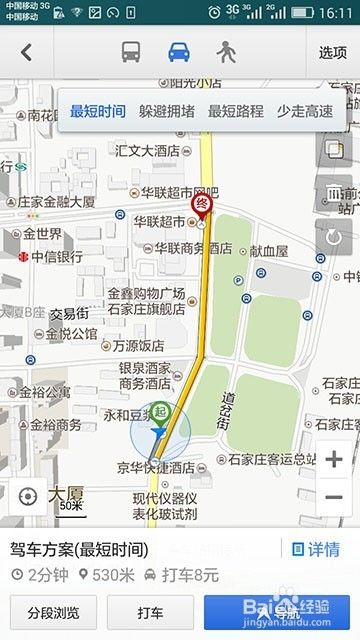 点击搜索,就会默认出现行车路线,并且出现起点与终点。其实路很近的,不用打车的。