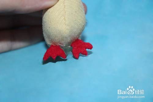 然后再给小鸡缝上两个爪子。