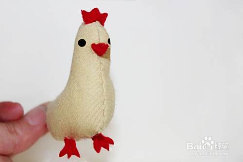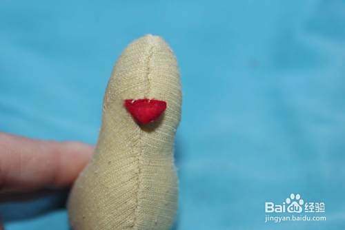 然后剪出嘴巴的布料,缝到小鸡头部。