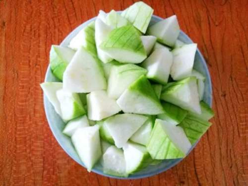 2丝瓜去皮洗净,切成滚刀块备用。