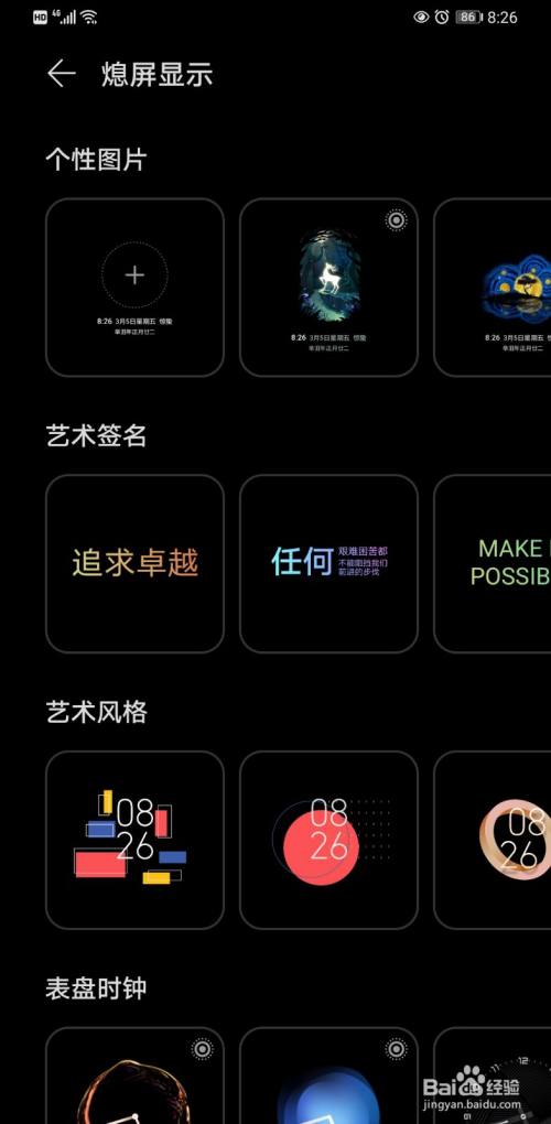 可以选择各式各样的息屏样式