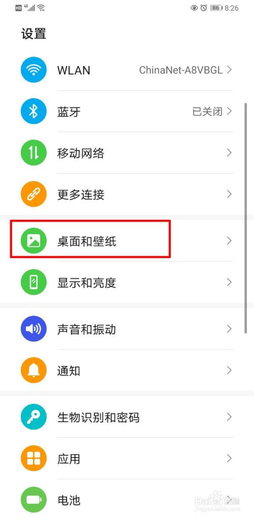 点击设置里面的“桌面和壁纸”