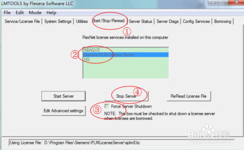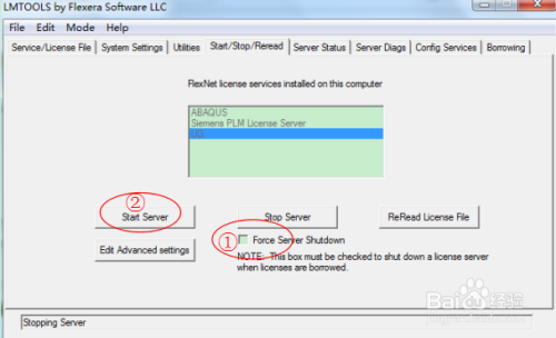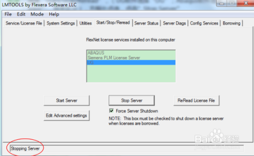 选择“Start/Stop/Reread”,(UG软件选择“UG”;Abaqus软件选择“Abaqus”),方框处点选出现“√”,点击”Stop Server"
