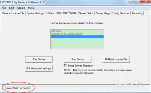 方框处点选去掉“√”,再点击"Start Server",显示“Server Start Successful”,即可启动软件。