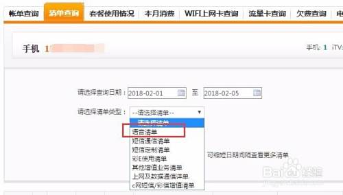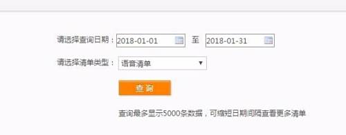 我们在费用查询中清单查询中可以看到有一个清单类型的选择,我们点开找到语音清单。
