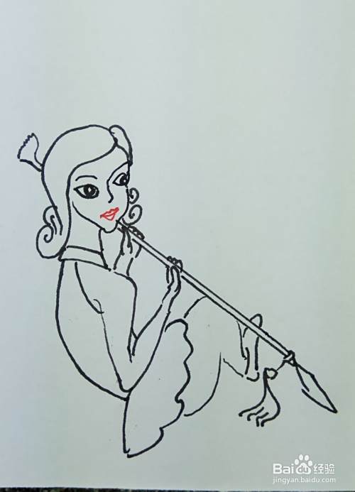 用线条和曲线画出这个女孩右边的腿和脚,她正跳了起来,显得身手非常灵活。