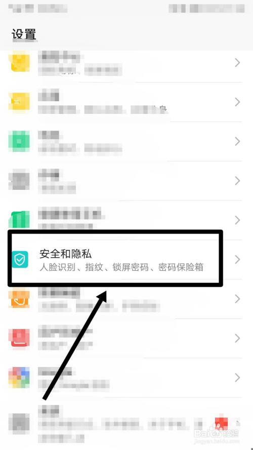 打开手机上的设置,点击安全和隐私。
