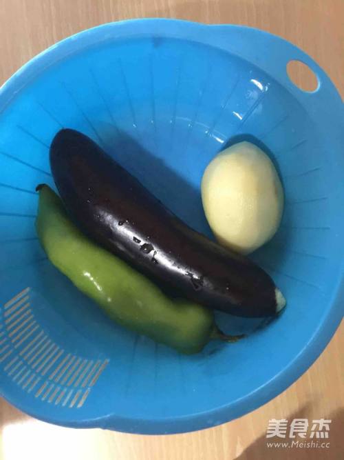 放入比平时炒菜多1.5倍的油,下锅煎土豆片,时不时炒一下防止粘锅,炸至稍微金黄色盛出,茄子也是。辣椒炒一下盛出即可。
