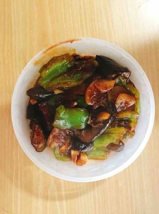 放入过油的茄子土豆辣椒翻炒收汁