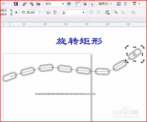用“调和工具”进行调和,属性栏中改数字,如改为6,根据路径而改数字,再旋转矩形,如图: