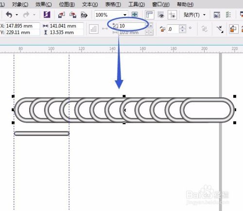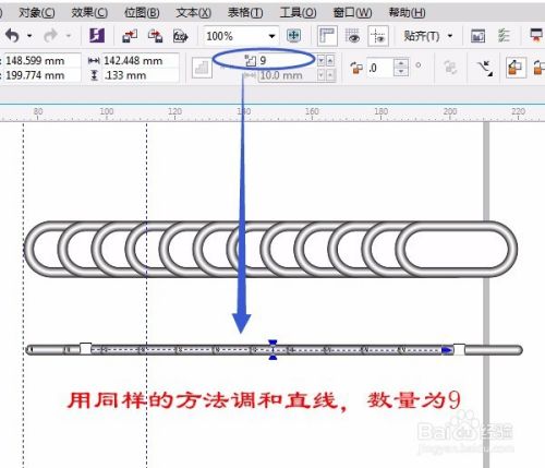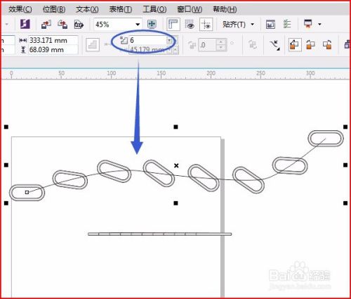 调和属性栏中改数字中改数字要根据路径长短而改