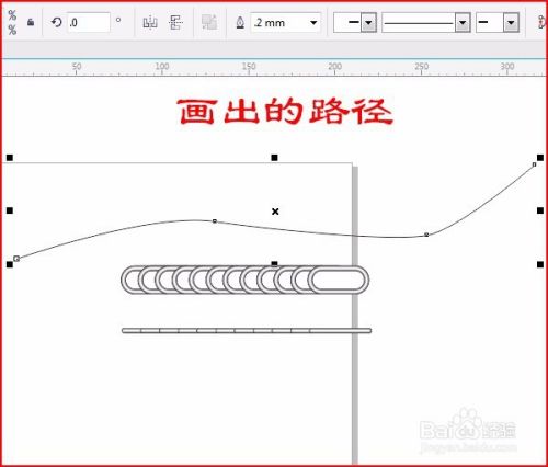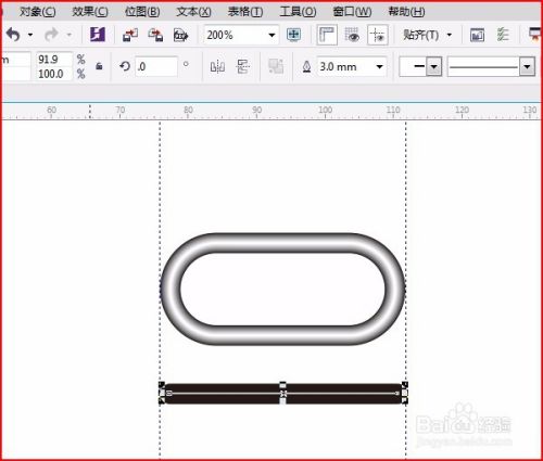 在标尺处拉出辅助线,用“2点线”画一条直线,变圆角,如何线条两端变圆角参考之前做过的实例, 复制直线变粗并调和,如图:
