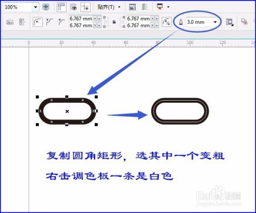复制圆角矩形,选其中一个变粗,一条右击调色板中的白色,如图: