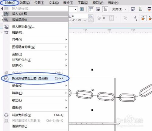 选定图形,单击“对象”菜单→拆分路径群组上的混合,选定路径,按Delete键删除,如图: