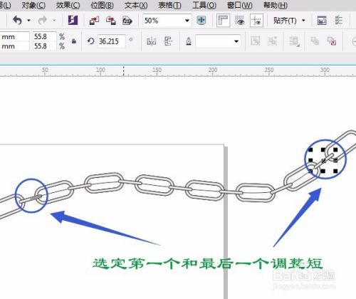 利用矩形工具、交互式填充工具、选择工具、调和工具、对象菜单、贝塞尔工具、属性栏等制作金属链效果图
