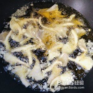油温至七成热时,依次下入挂好面糊的蘑菇,中火炸五分钟。