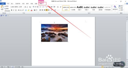 插入后,单击鼠标左键选中图片,在菜单栏中找到“格式”选项并单击。
