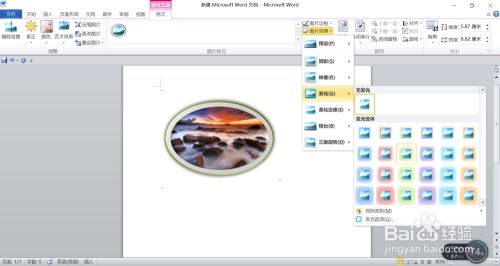 单击“图片样式”中的“图片效果”选项,可以设置新图片的图片效果,如发光、阴影设置等。