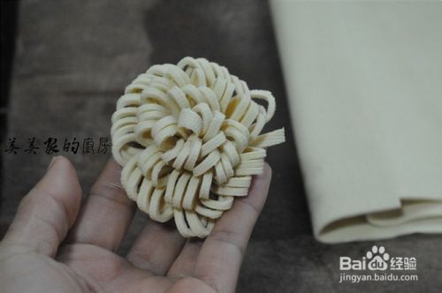 将切好的豆皮丝从一段卷起,稍微整理一下,更像花朵。